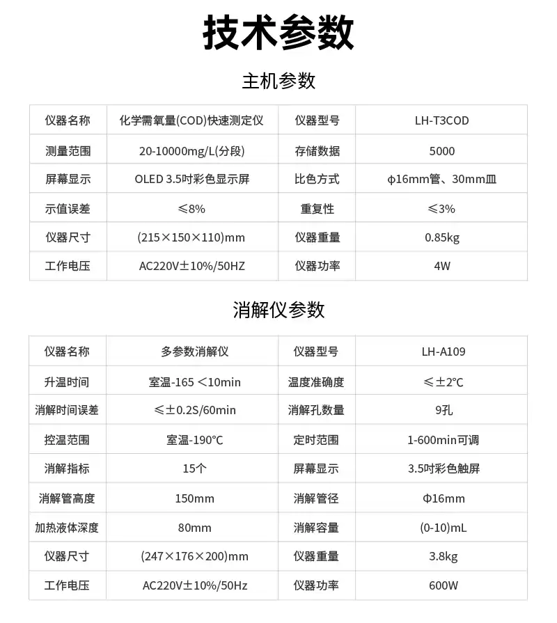 清淼系列化学需氧量快速测定仪LH-T3COD技术参数: