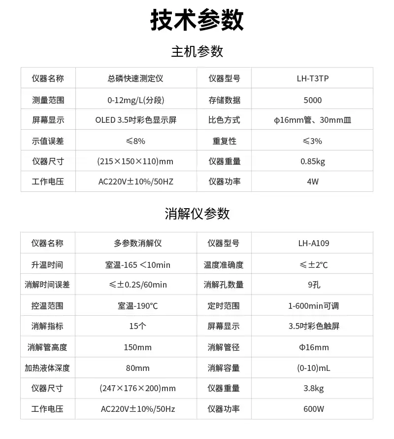 清淼系列总磷快速测定仪LH-T3TP技术参数: