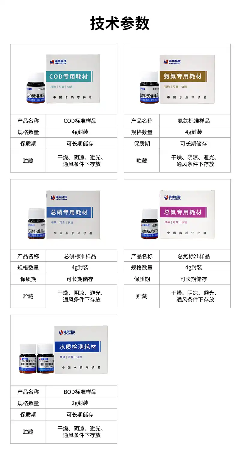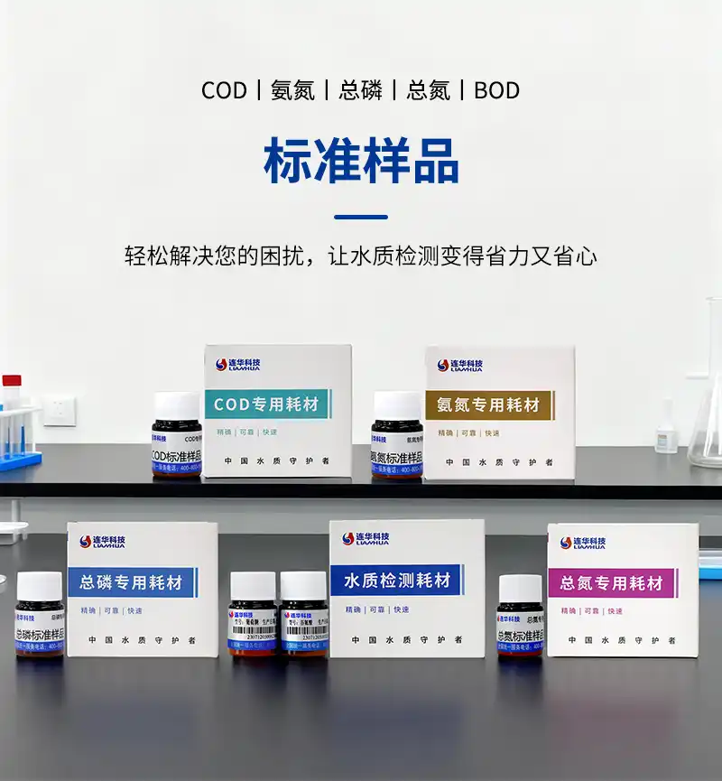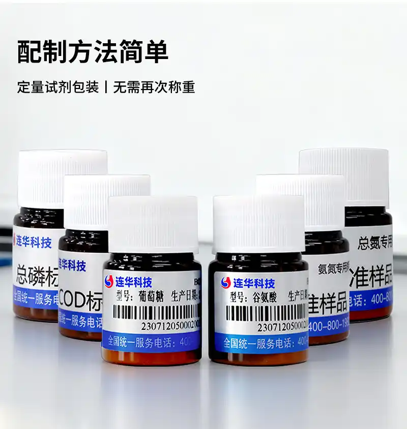 简要描述: 严格按照国家标准制备及校准,确保检测结果的准确性与可靠性;不同条件下实验结果一致,使不同实验间结果可比且可重复;可监控和评估检测仪器、方法的性能,作为质量控制的关键工具;可用于培训及教育场景,帮助检测人员快速熟悉和掌握水质检测方法和技能;水质检测实验中直接使用,有效减少检测操作流程,降低操作人员技术难度。