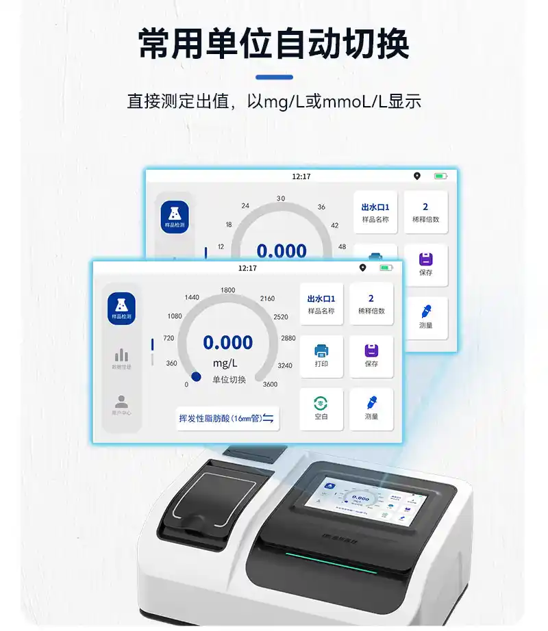(2)常用单位自动切换,直接测定出值,以mg/L或mmoL/L显示;