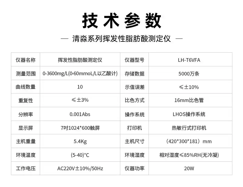 挥发性脂肪酸测定仪LH-T6VFA技术参数: