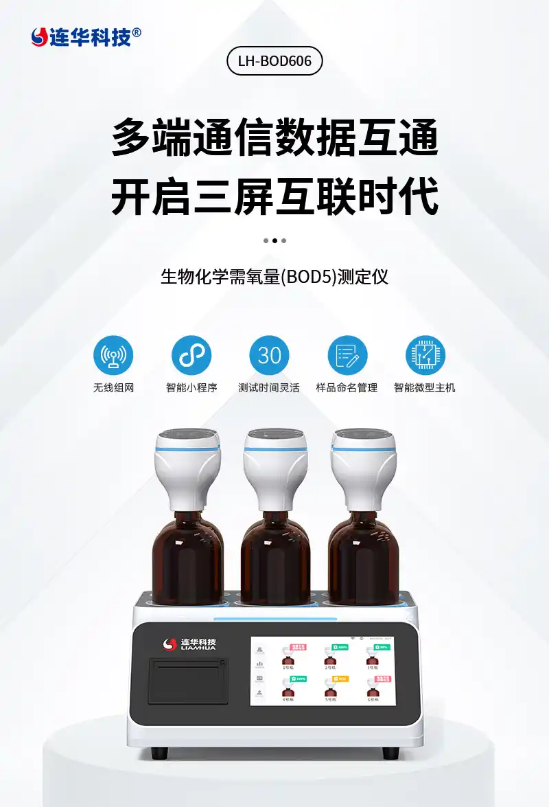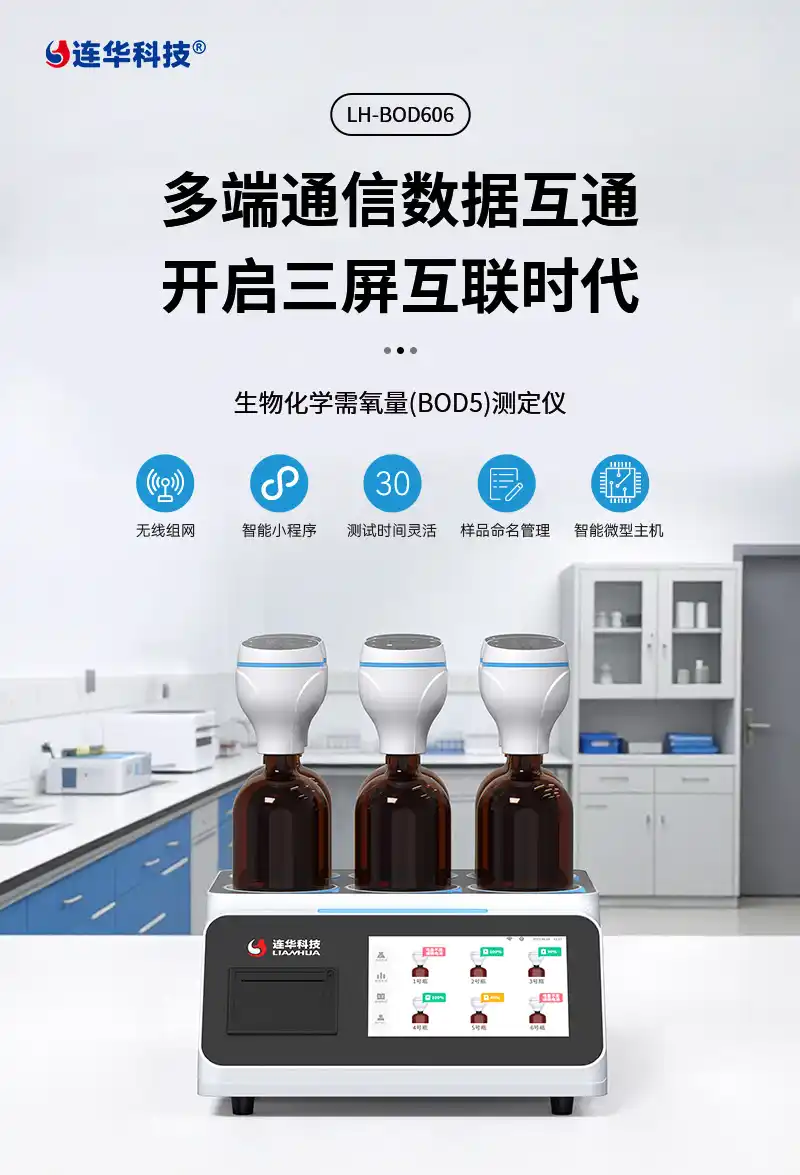生物化学需氧量(BOD5)LH-BOD606测定仪 符合国标《(HJ505-2009)水质五日生化需氧量(BOD5)的测定稀释与接种法》反应进程, 以《ISO9408-1999》为依据制造,采用自主研发的LHOS操作系统,内置强大的处理芯片,操作简单功能全面