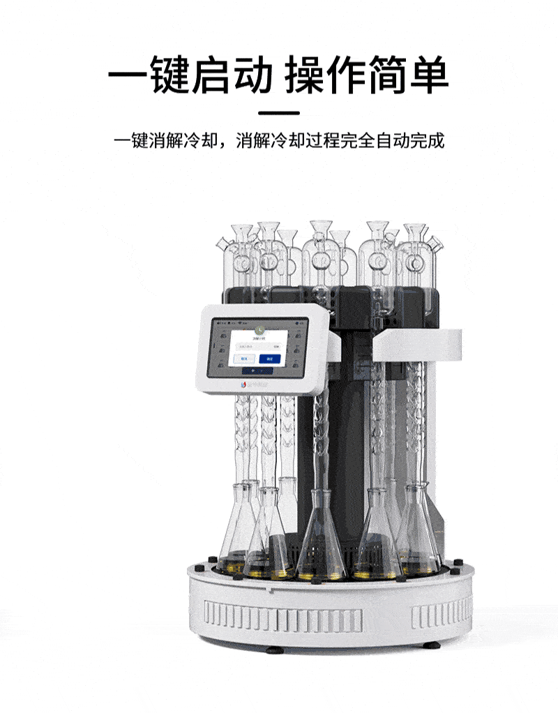 2、一键启动:智能模式操作简单,只需一键启动,各消解单元按照设定程序,自动升温、消解、回流、冷却;