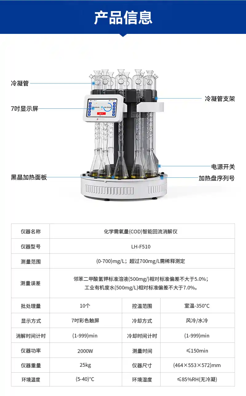 化学需氧量智能回流消解仪LH-F510技术参数: