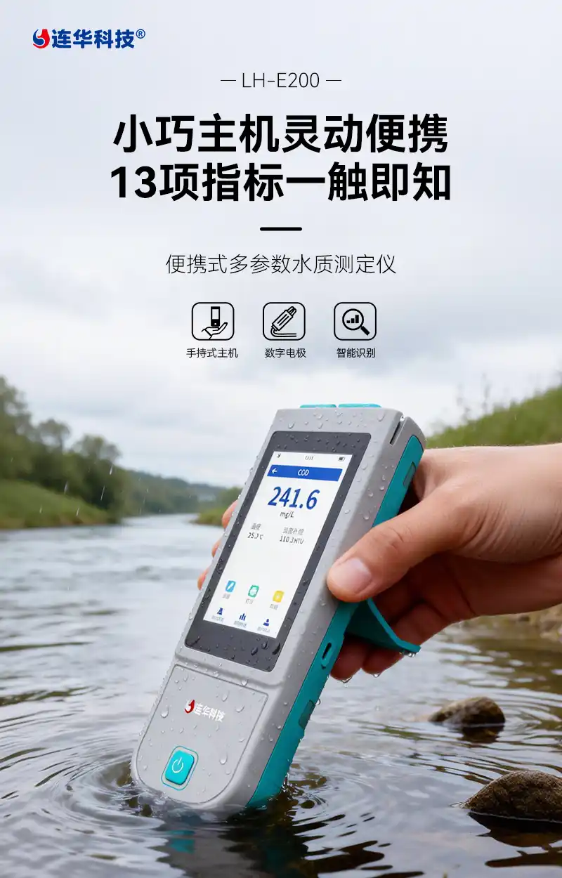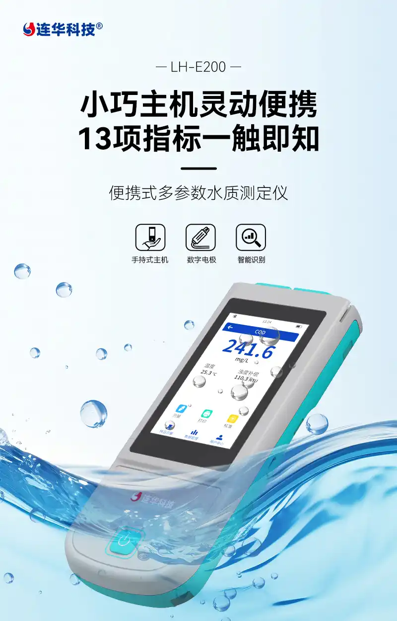 简要描述: LH-E200便携式多参数水质测定仪是一款电极法水质分析仪器,采用全数字电极检测pH、溶解氧、电导率、ORP、盐度、TDS、浊度、COD、氨氮、叶绿素、蓝绿藻、污泥浓度13个指标。仪器搭载自研LHOS操作系统,操作简单、性能稳定、测量准确、检测范围广,内置高容量充电锂电池,便于用户在野外、实验室随时进行水质检测工作。