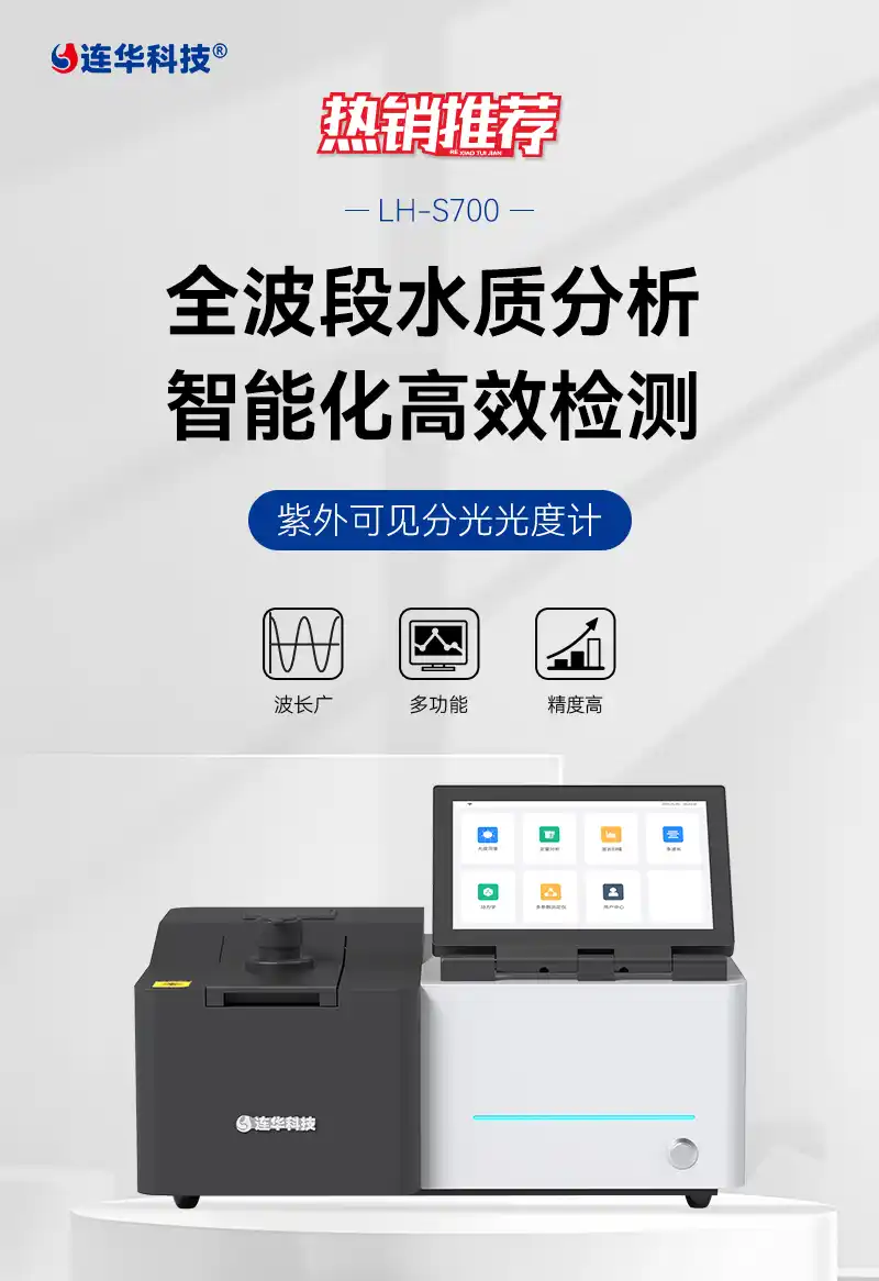 简要描述: LH-S700紫外可见分光光度计是一款智能型全波段分析仪器,波长范围190-1100nm,符合《JJG178-2007紫外、可见、近红外分光光度计检定规程》不低于Ⅱ级要求标准,具有光度测量、定量测量、动力学分析、波长扫描、多波长测试、多参数测试功能,既可作为紫外可见光度计使用,也可以作为多参数水质测定仪使用。