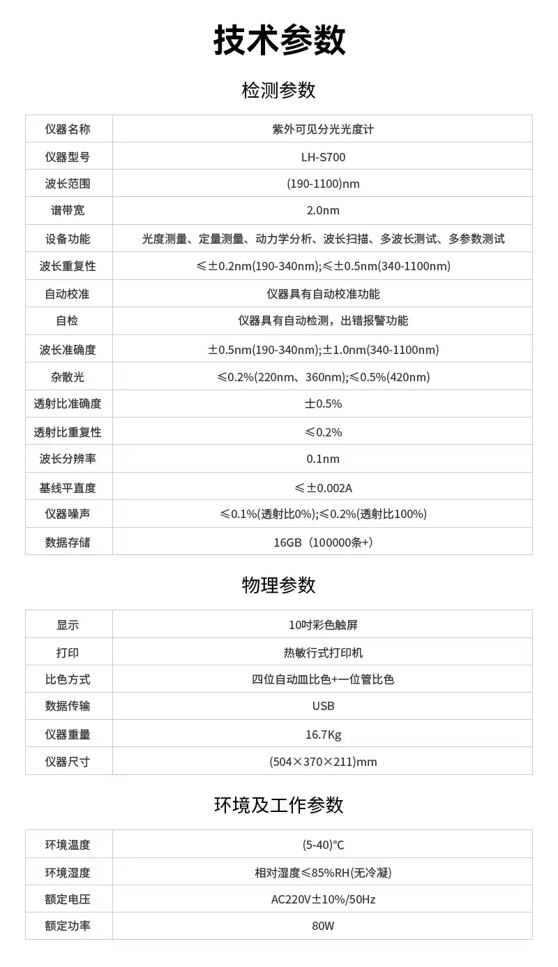 紫外可见分光光度计LH-S700技术参数: