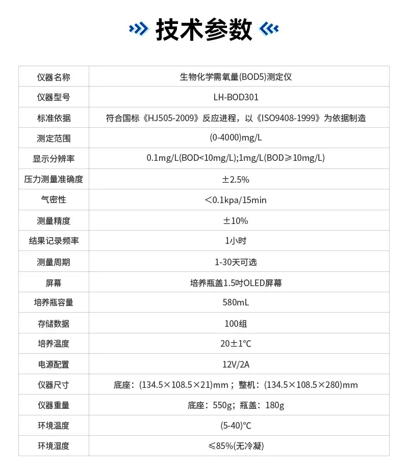 6、符合国标《HJ505-2009》反应进程,以《ISO9408-1999》为依据制造,采用无汞压差法,无汞污染且数据准确可靠;