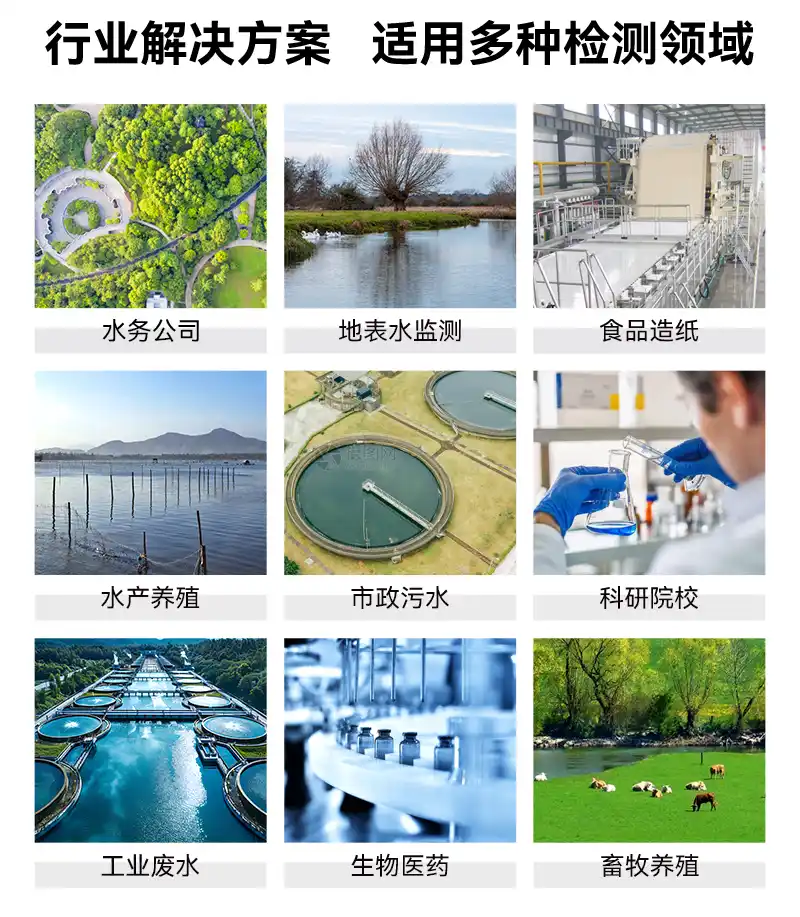 10、仪器适用于地表水监测、水务公司、水产养殖、市政污水、食品饮料、工业废水、科研院校、生物制药等行业领域。