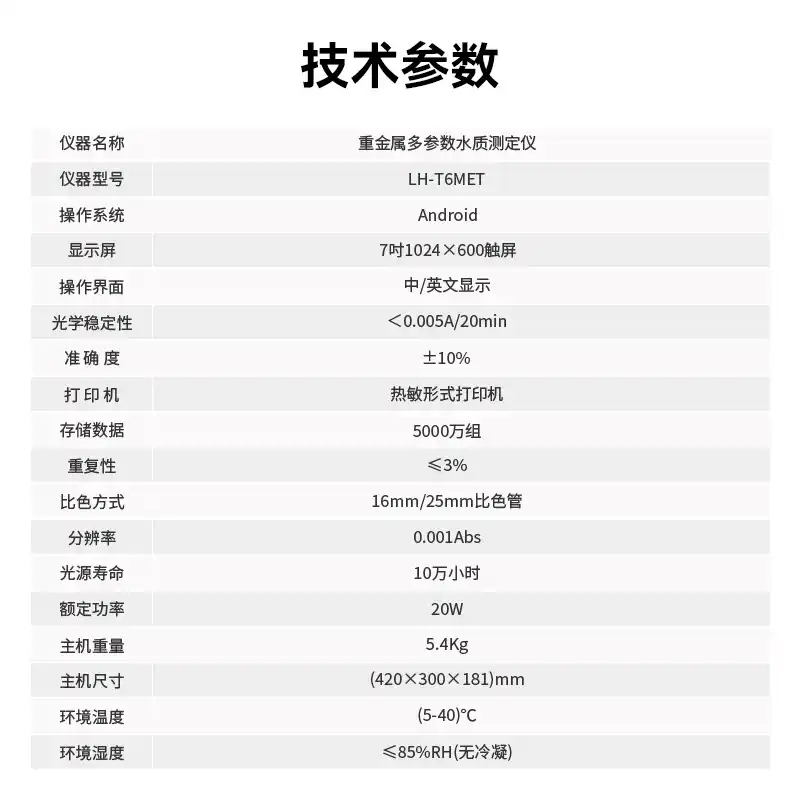重金属多参数水质测定仪 LH-T6MET技术参数: