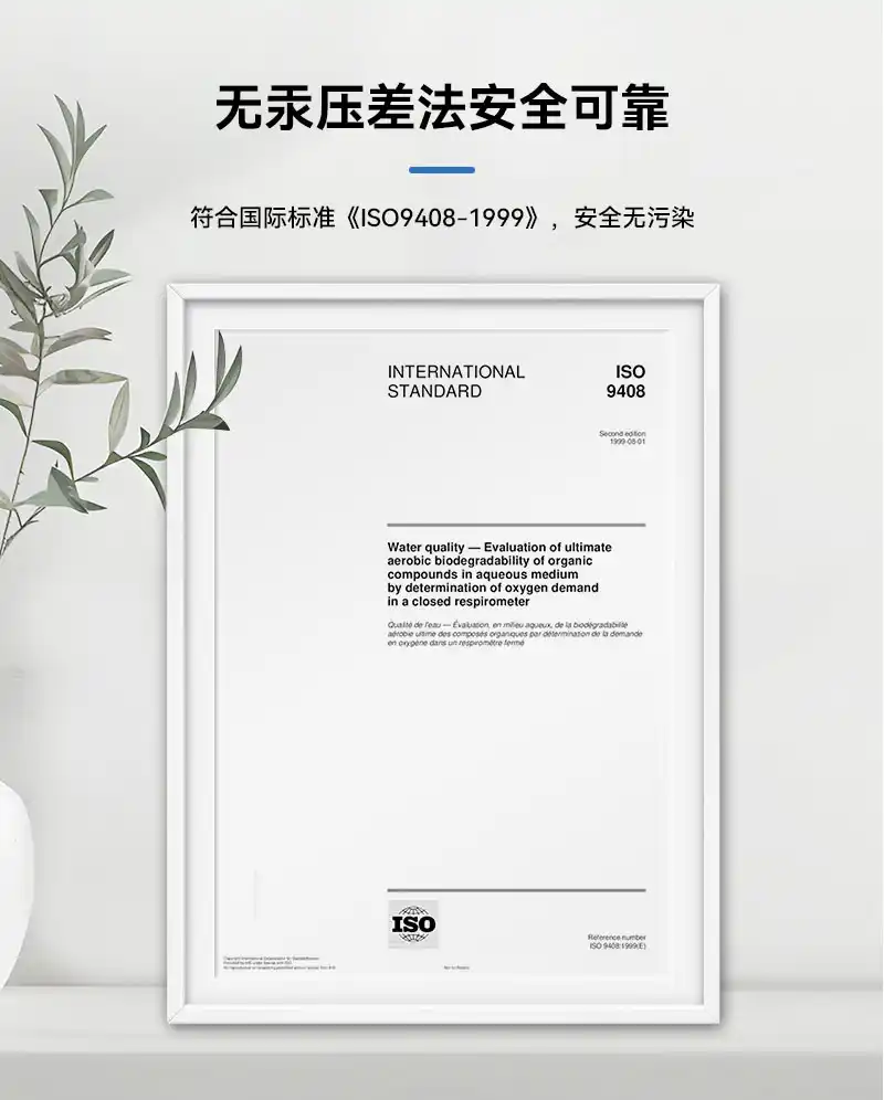 7、符合国标《HJ505-2009》反应进程,以《ISO9408-1999》为依据制造,采用无汞压差法,无汞污染且数据准确可靠。