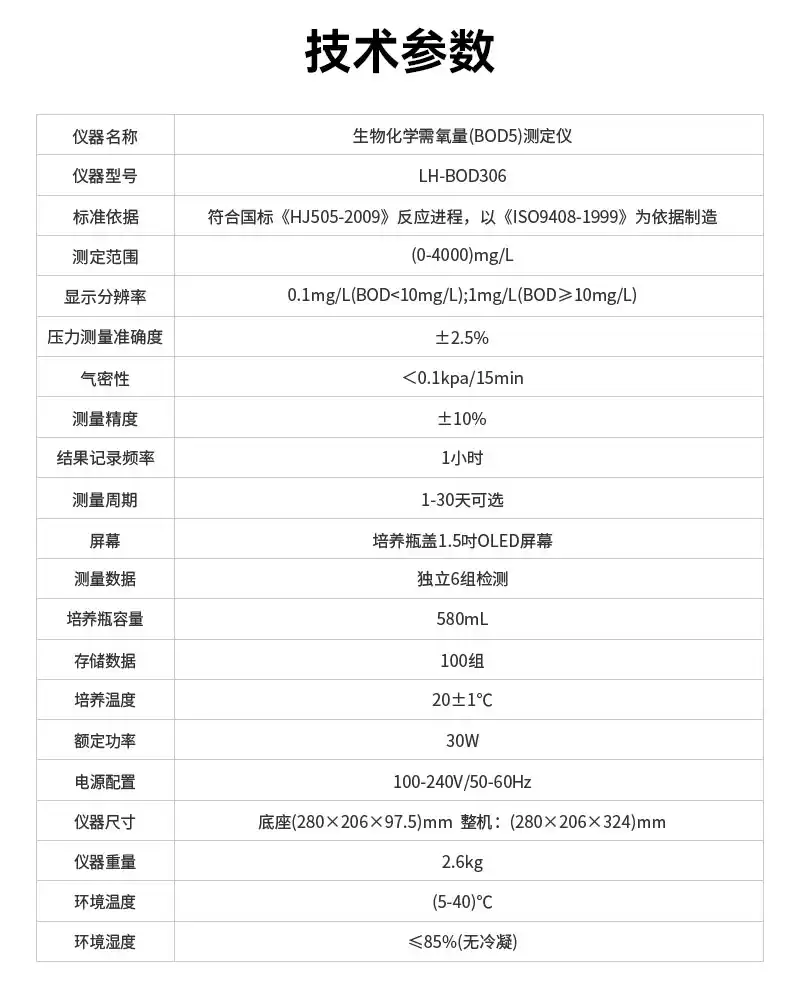 2.显示分辨率:0.1mg/L(BOD<10mg/L);1mg/L(BOD≥10mg/L)