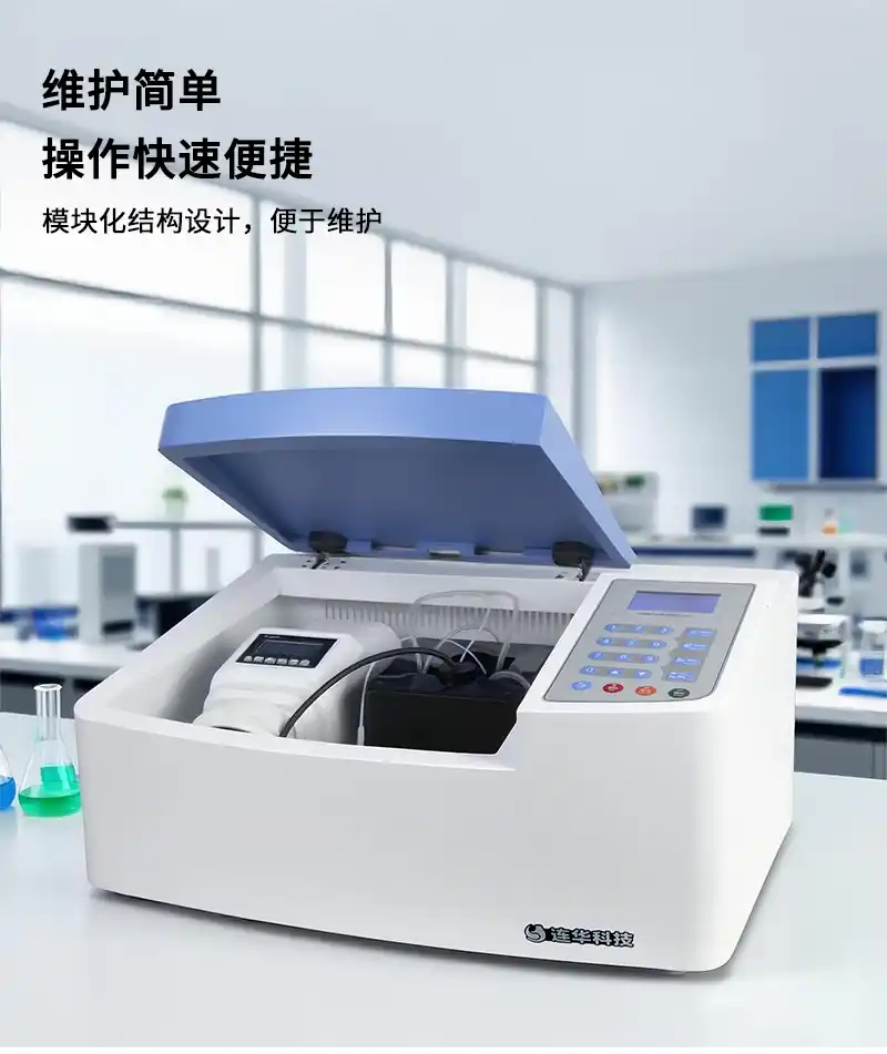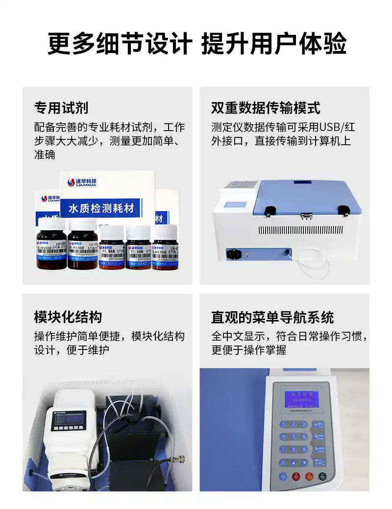 一、功能特点1、测定原理采用微生物电极法,比传统BOD5方便快捷2、采用连续恒流微量进样方式,样品采集量小,无添加预处理试剂,二次排放零污染3、操作维护简单便捷,模块化结构设计,便于维护4、水样无需前处理,抗干扰能力强5、安全性高,固化隔膜式微生物传感器无毒无害,活化使用方便6、结构可靠,简单无易损件,寿命长7、检测流通一体化,信号稳定8、恒温系统采用独立研发的P10恒温控制器,形成精准稳定的测试稳场