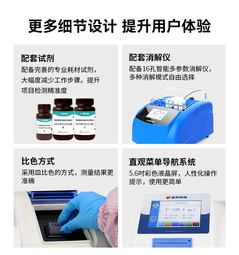 简要描述: 仪器基于GB11892-89法基本原理,优化国标法检测实验步骤,消除人为误差因素,采用快速分光光度法测值,能直观、快速测定水中高锰酸盐指数。冷光源、窄带干涉技术,实现光源寿命达10万小时,配备完善的耗材及配件,让实验检测更加准确、方便、快捷。