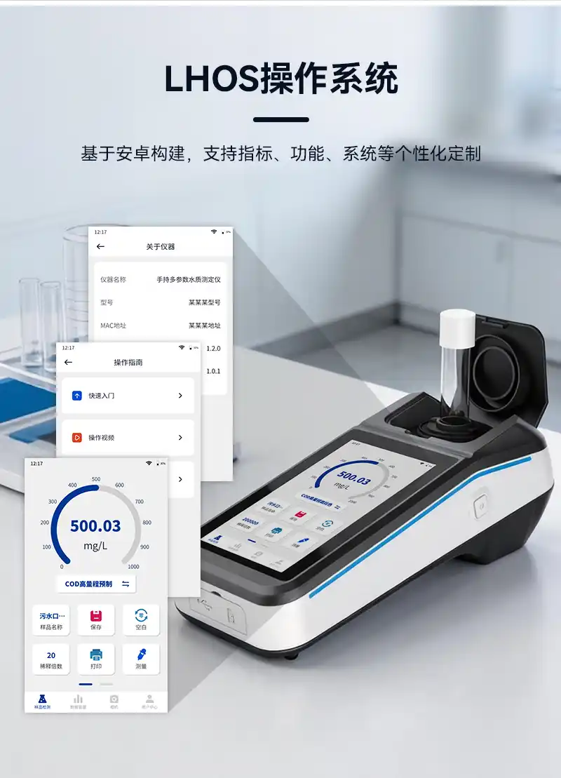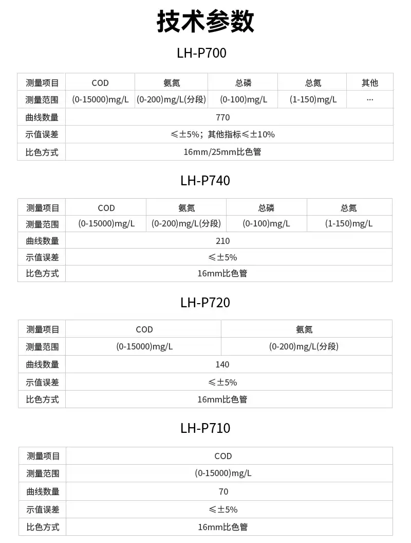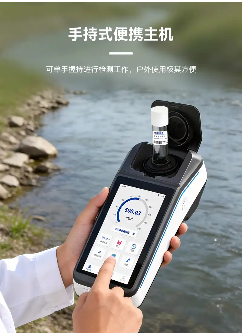 17、检测项目依据国家行业标准:COD-《HJ/T399-2007》、氨氮-《HJ535-2009》、总磷-《GB11893-89》,仪器适用于环监部门、监测机构和其他现场检测或非固定地点检测需求的单位;