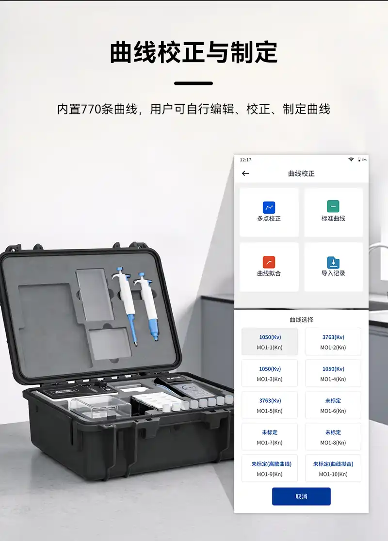 11、用户可根据需求自行制作标准曲线,内置曲线也支持多点/单点校准,校准记录仪器自动保存,便于后期查看记录及调用曲线;