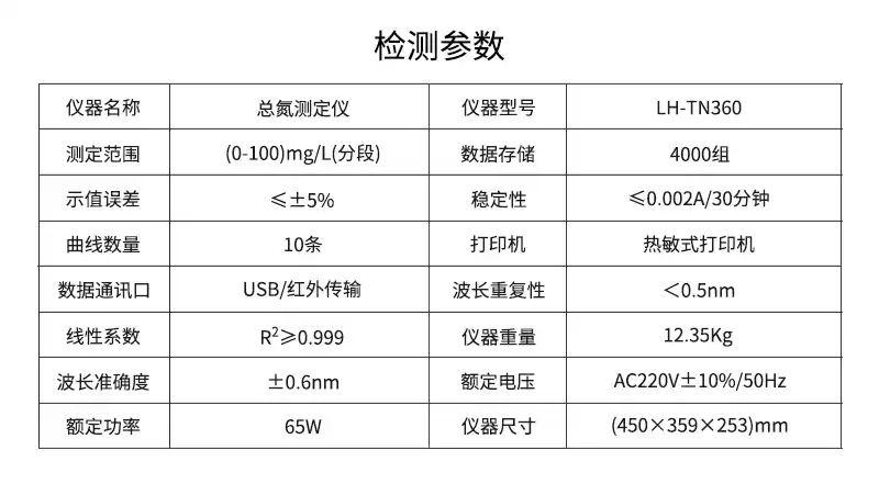 总氮是环境保护污水处理中重要的一个检测项目,LH-TN360总氮测定仪是速度快,成本低的检验水质中总氮含量的一款智能仪表。实现总氮紫外法检测简单化、智能化、标准化,是一款国产性价比超高的总氮检测国标仪器。