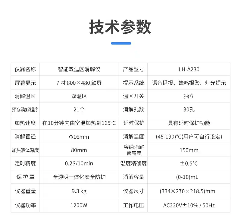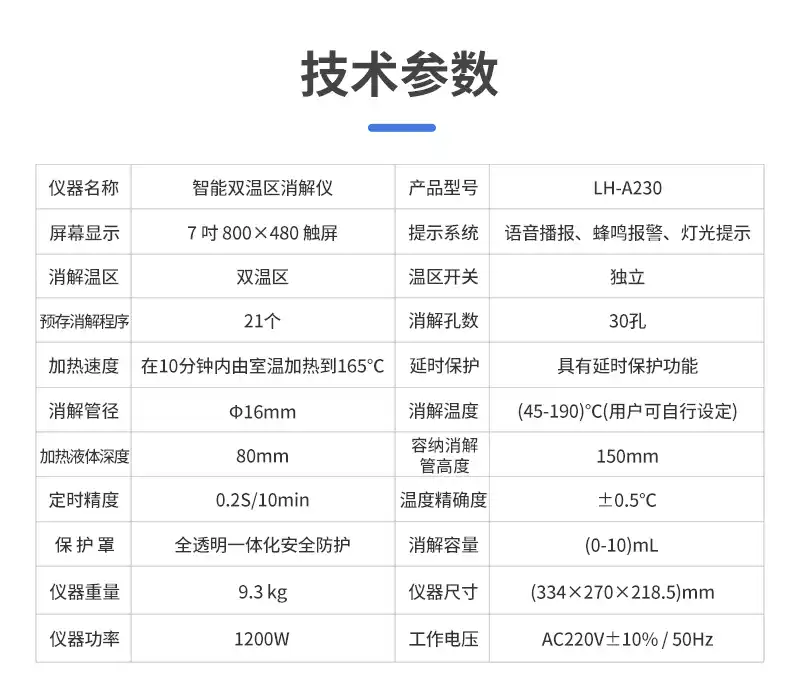智能双温区消解仪LH-A230 技术参数