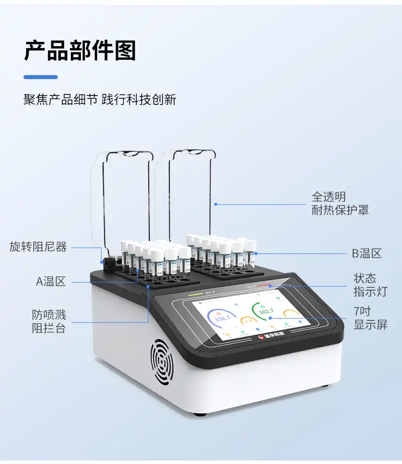 2、安全可靠:全透明一体化耐热保护罩,可以直接观察水样状态,又保证消解安全可靠;