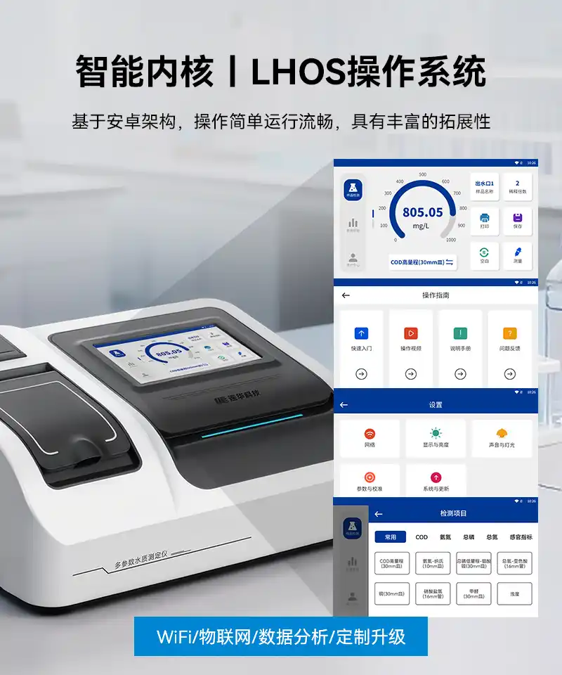 简要描述: LH-T600专注于实验室水质检测,能够快速、准确地测量水样中的COD、氨氮、总磷、总氮、有机污染物及无机污染物等多项参数,内置122项测量模式,即使是同一指标也可以用多种方法进行检测,提升检测结果的准确性和科学性。仪器还具备LHOS操作系统、旋转管比色、指标定制、曲线校正、物联网等诸多优势。