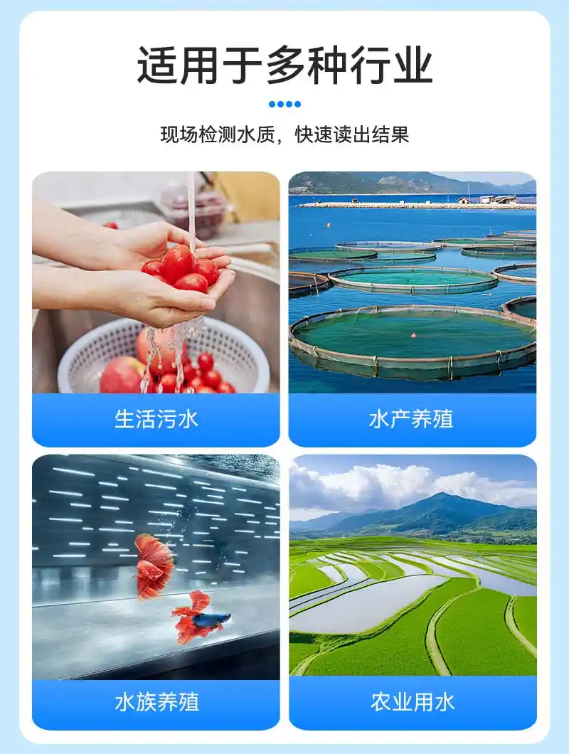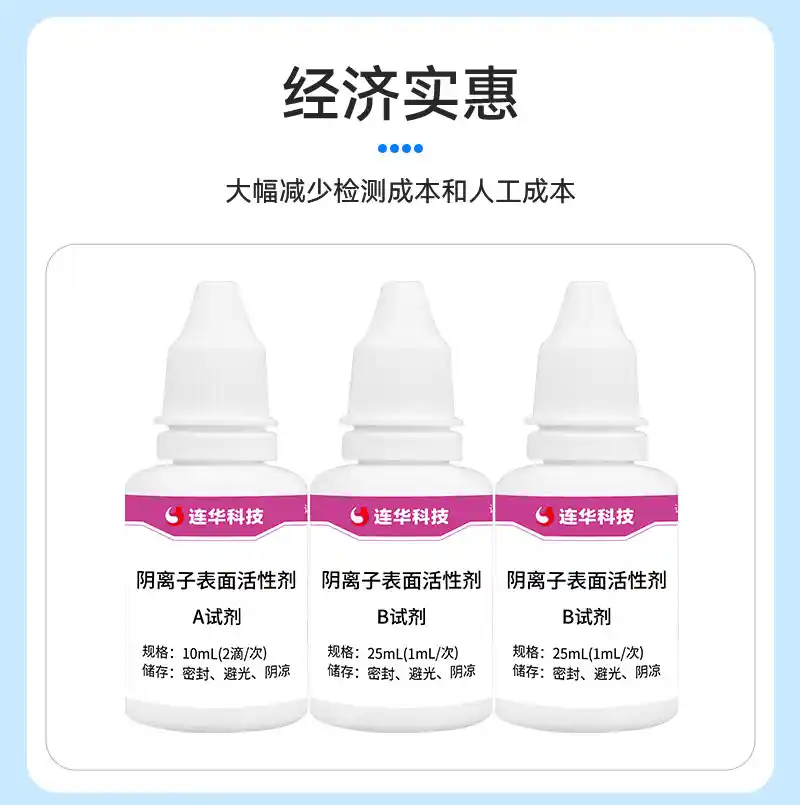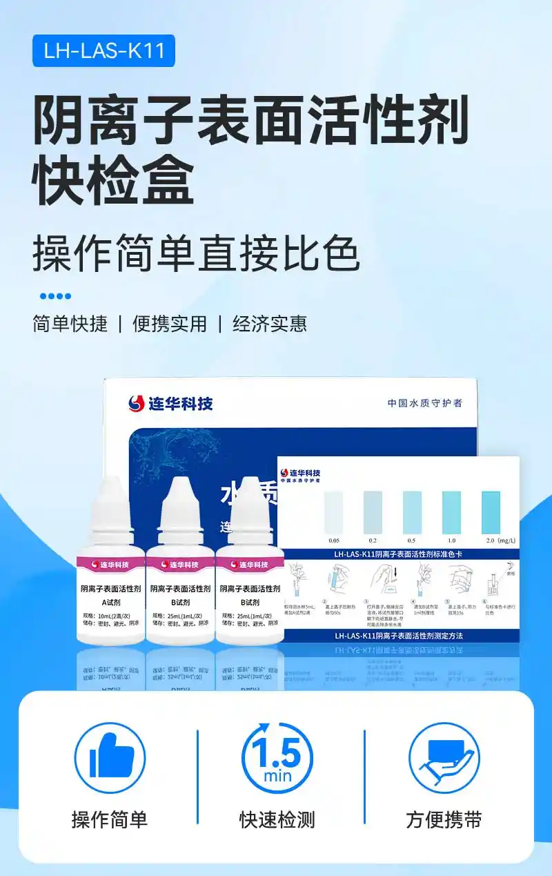 简要描述: 阴离子表面活性剂指标(0.05-2.0mg/L)快速检测,操作简单,反应灵敏,轻便易携,经济实惠。