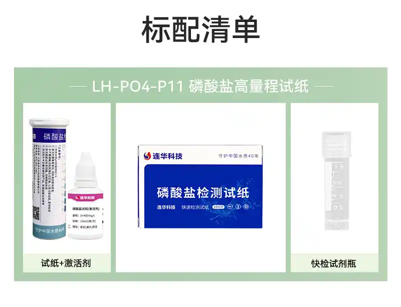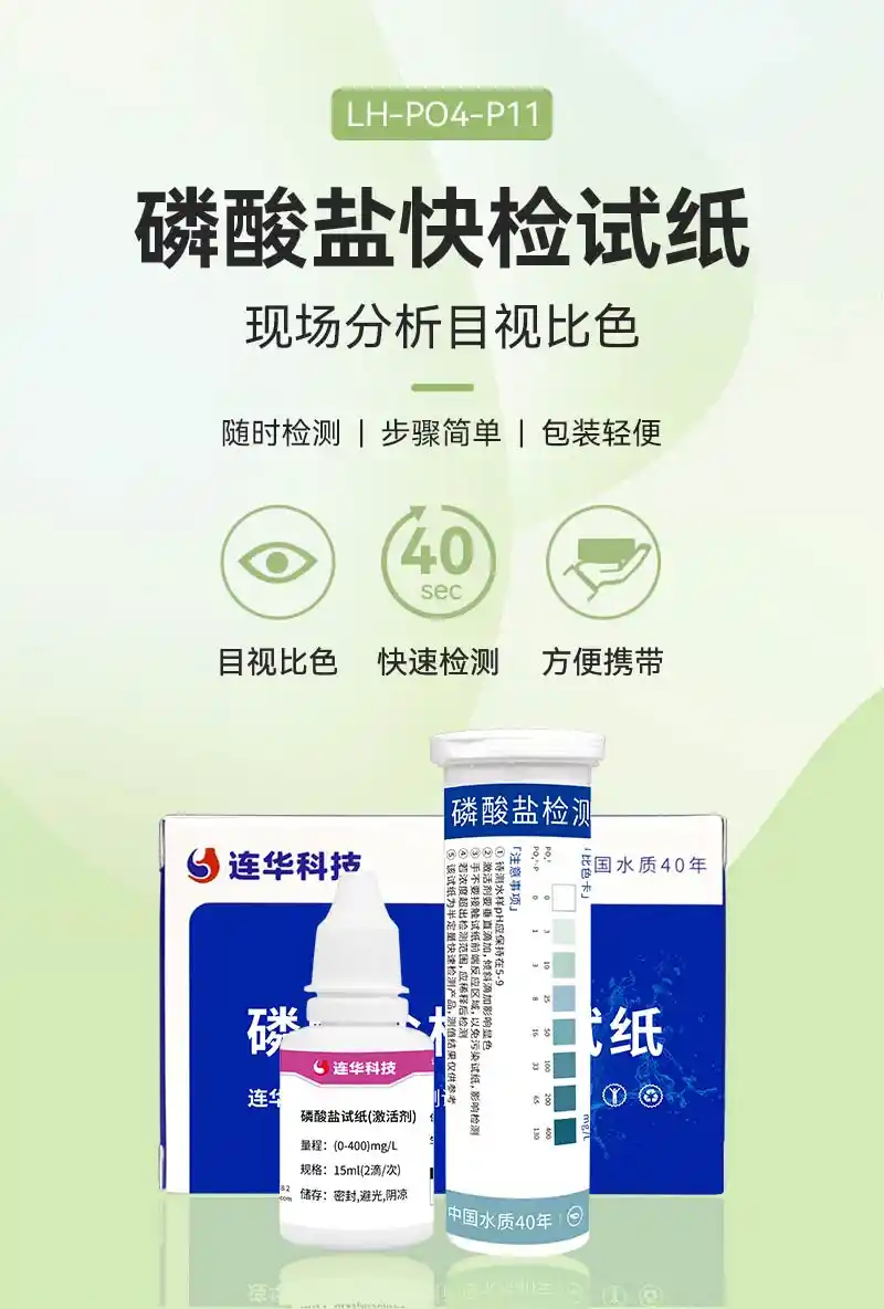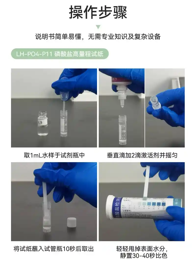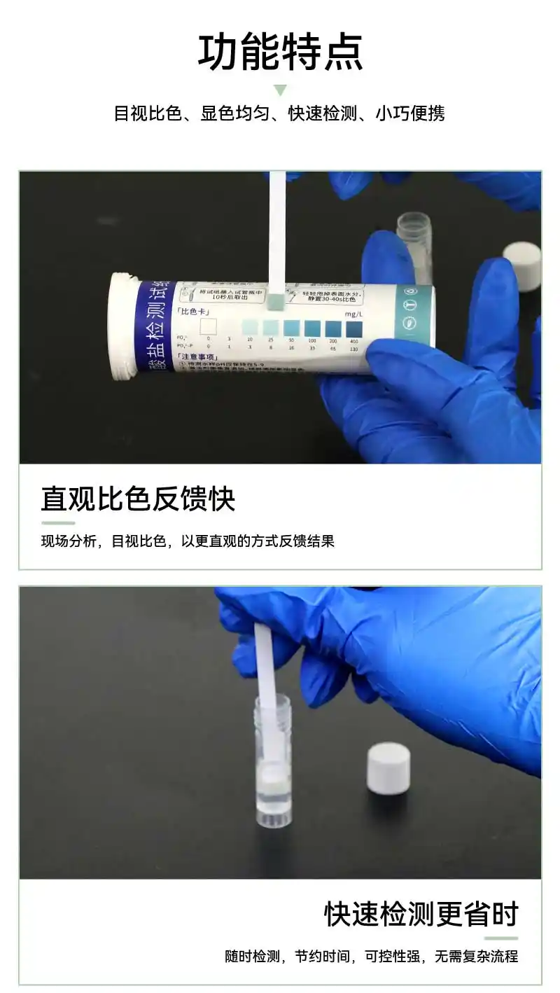 简要描述: 磷酸盐(0-400mg/L)快速检测,现场分析,目视比色,以更直观的方式反馈结果
