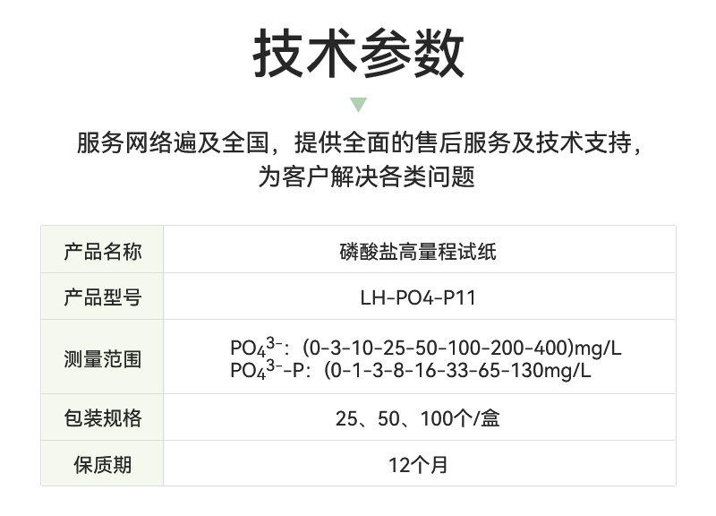 试剂名称:磷酸盐试纸(高量程)试剂型号:LH-PO4-P11包装规格:25、50、100个样/盒量 程:PO43-:0-3-10-25-50-100-200-400 PO43--P:0-1-3-8-16-33-65-130保质期:12个月