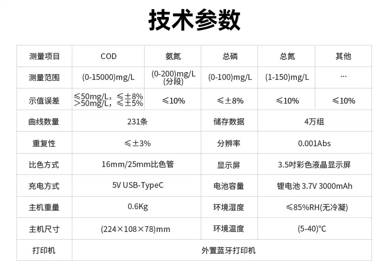 14、产品配套齐全:COD、氨氮、总磷、总氮预制耗材,密封反应管,冷却架,管比色架,移液枪,适配器等。