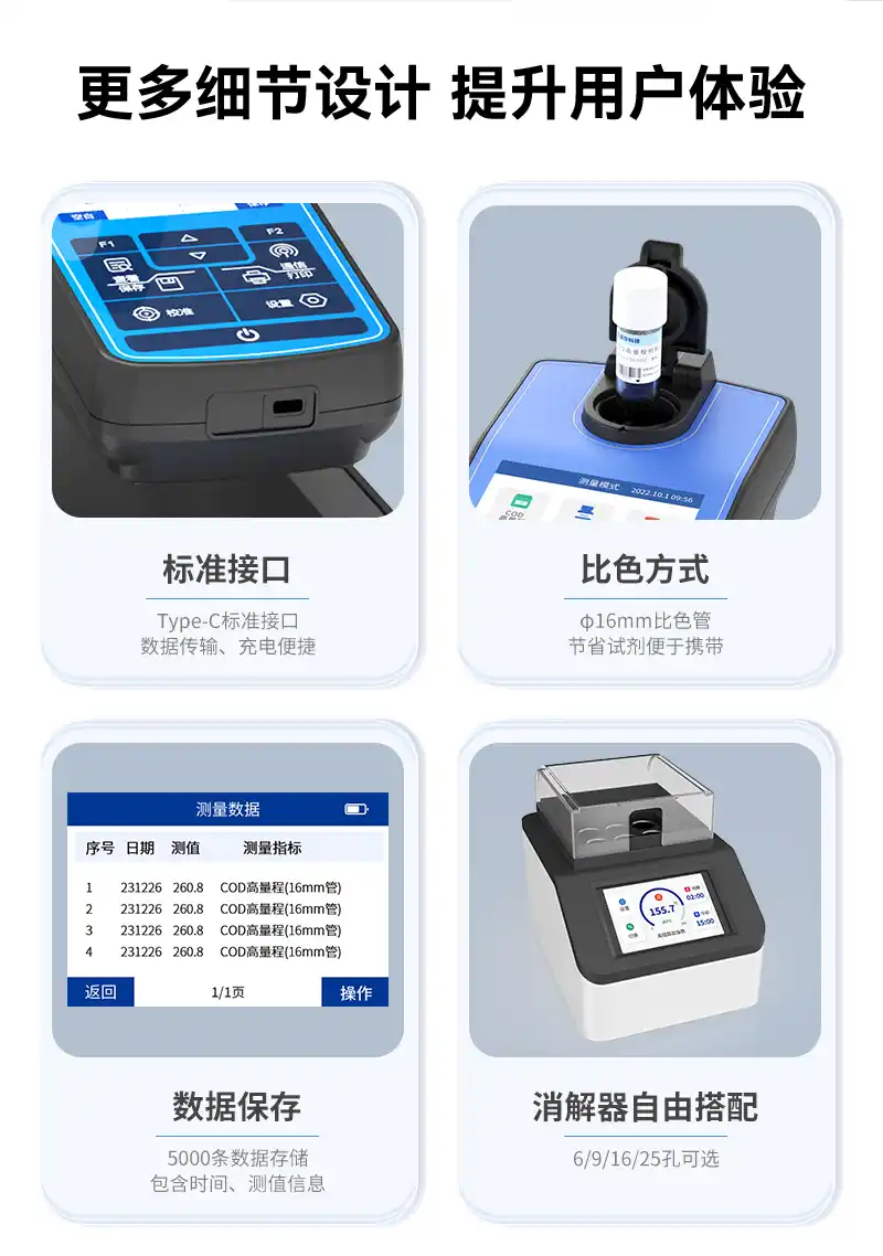 简要描述: 清澜系列LH-P3TN是一款手持式总氮快速测定仪,仪器小巧轻便,存放节约空间,操作简单功能齐全。经典连华家族式动态表盘界面,可直观显示检测结果,量程超限红色警示。内置大容量锂电池,采用Type-c标准接口,续航持久,充电、数据传输都非常方便。